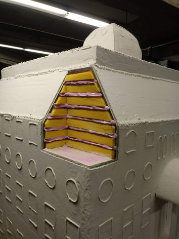 Sometimes the largest projects end up onstage for the smallest amount of time. This giant cake measured approximately 3'x3'x3'6" and was onstage for around 6 seconds. Nevertheless it was made with much love and to look as close to a real frosted cake as possible.