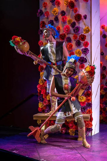 Two sizeable projects for this show were building courtesans and making over a thousand paper flowers that were attached to the scenery walls. In the interest of keeping the cast size down due to limited backstage space, the courtesans were made to fill the spots. The paper flowers were made over several weeks and came in 7 colors and 3 sizes.